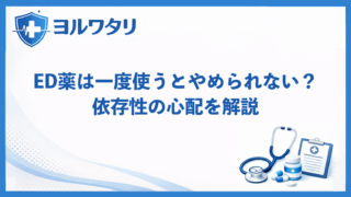 ED薬について調べていると、一度使うとやめられなくなるのでは?体が薬に頼るようになるのでは?といった不安を感じる人もいるかもしれません。結論から言うと、ED薬には依存性はありません。そのため、医師の指示に従って使用すれば、やめられなくなる薬...