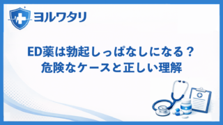 ED薬について調べていると、勃起しっぱなしになるのでは?勃起が止まらなくなることはある?といった不安を感じる人もいるかもしれません。結論から言うと、ED薬を飲んだからといって勃起しっぱなしになるわけではありません。ED薬は「性的刺激があった...