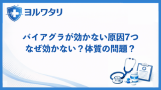 「バイアグラが効かない…」初めて飲んだのに反応が弱い。2回目も効かない。「体質?もうダメ?」と不安になりますよね。結論から言うと、バイアグラが効かない原因の多くは体質ではありません。飲み方や状況が影響しているケースが非常に多いです。ここでは...