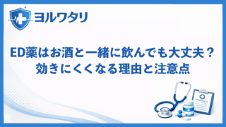 ED薬は食後でも使えるのかを解説。脂っこい食事で効きにくくなる理由、バイアグラとシアリスの違い、食後に時間をどれくらい空けるべきか、失敗しにくい飲み方まで分かりやすくまとめました。