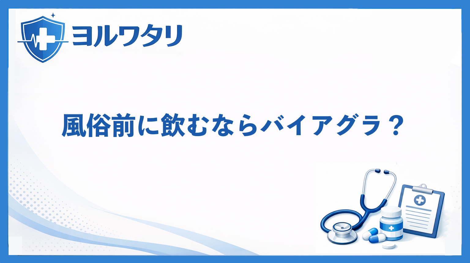 この記事では、風俗前にバイアグラが向いている人の特徴、失敗しにくい飲み方、食事やお酒の影響まで、実用ベースで整理します。